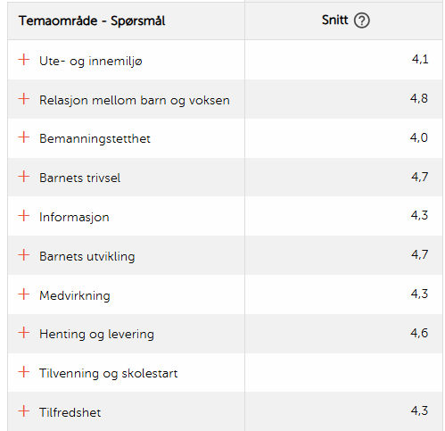 Vi hadde i år en svarprosent på 82,1%, noe vi er fornøyde med og gir oss et godt grunnlag for å videreutvikle barnehagen vår.